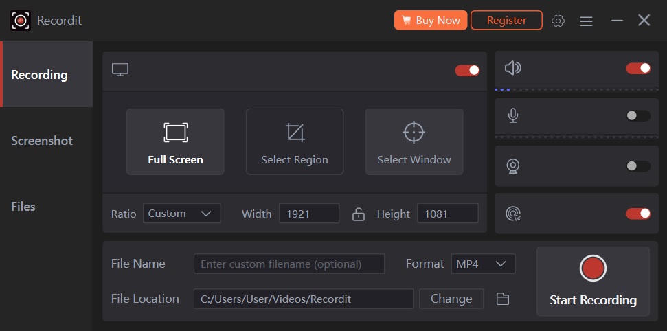 In my opinion, Swyshare RecordIt is a great choice for anyone looking for a budget-friendly screen recording tool. It comes with a simple and clean interface with conveniently positioned buttons. With it, you can record your screen, webcam, and audio effortlessly.